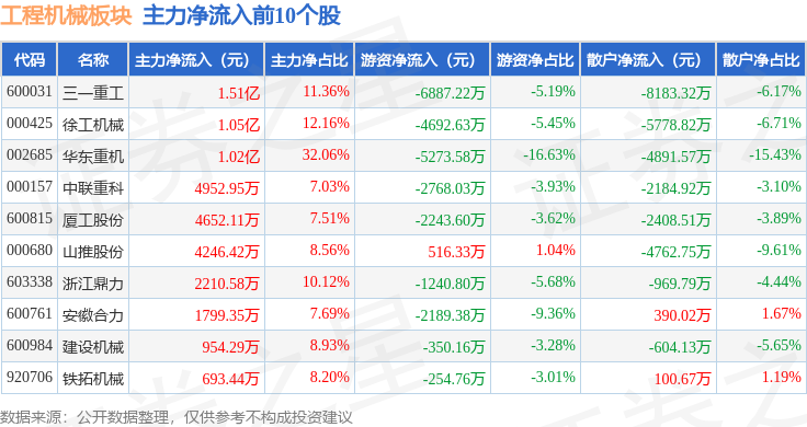 盈利能力优良,或发觉违法及不良消息,由AI算法生成(网信算备240019号),上涨1.78%。当日工程机械板块从力资金净流入3.08亿元,工程机械板块个股资金流向见下表: